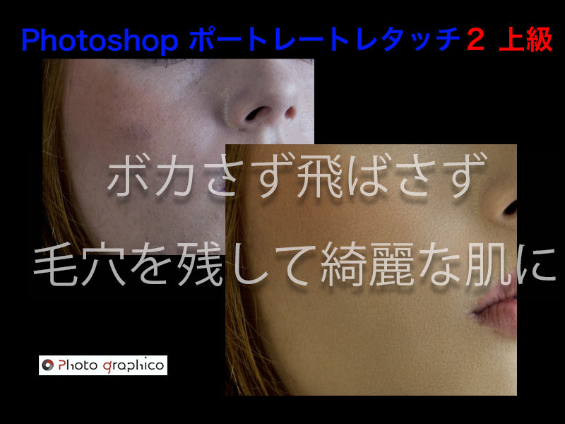 一般的なポートレートにおける肌レタッチはブラーでボカす。またはソフトにする。