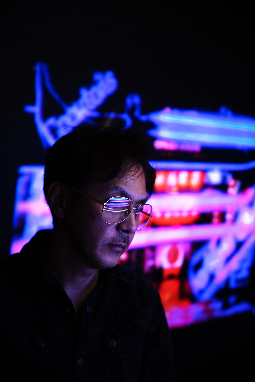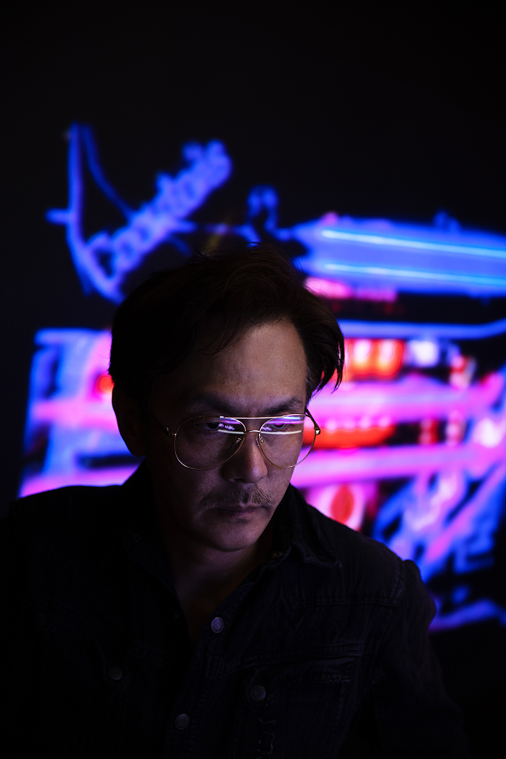 サングラスの反射や背景のネオンの光など前からと後ろからと光が入るように頑張ってみました。
