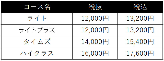- ライトコース、ライトコースプラスは現金のみとなります。その他、タイムズコース、ハイクラスコースはクレジットカードPaypayでの決済も可能です。
